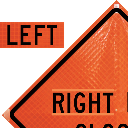 Vinyl velcro overlay made to allow the sign message to be easily changed. Perfectly pairs with our “Right Lane Closed Ahead” roll-up sign.
